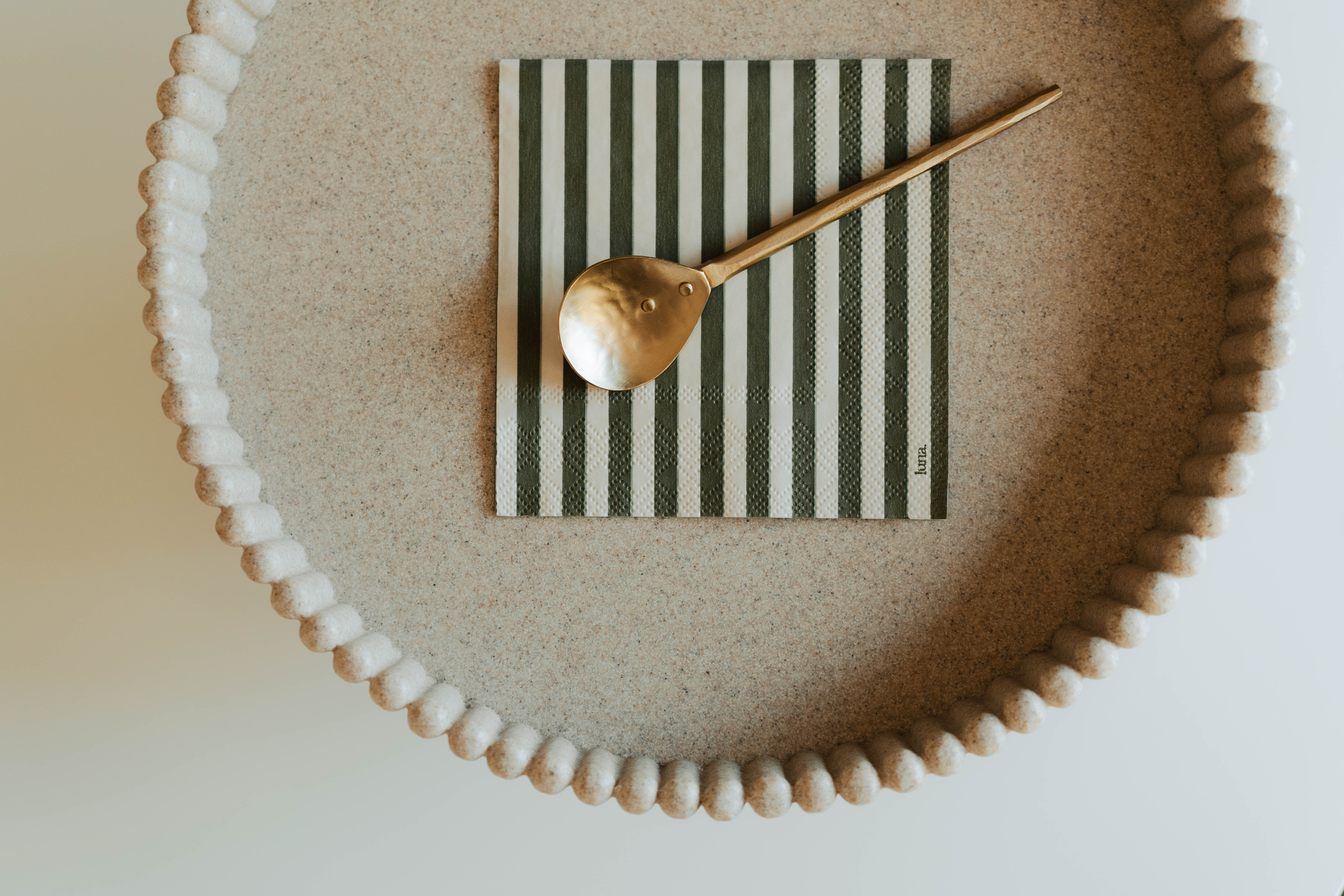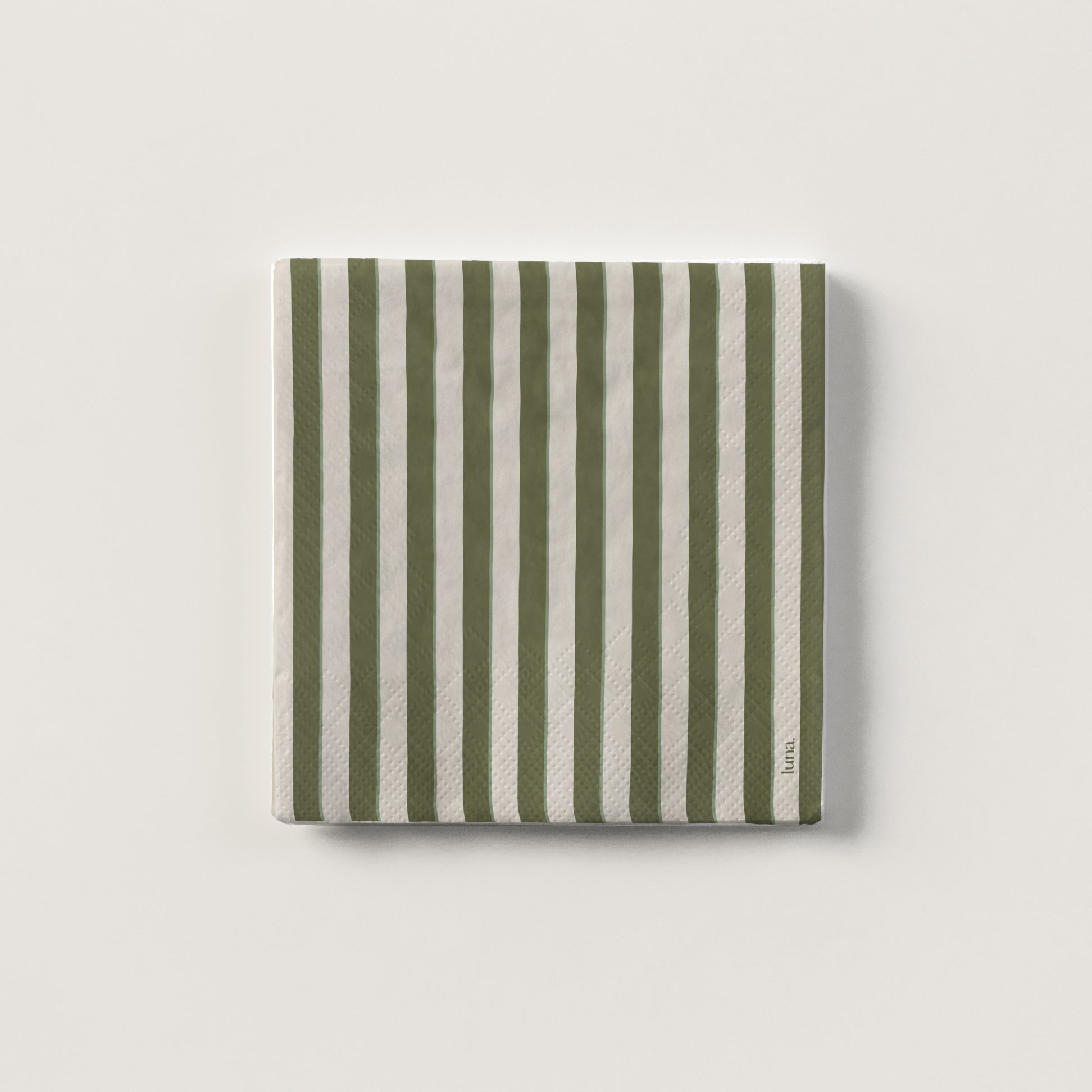 Truly timeless evergreen pinstripes atop a cream backdrop.