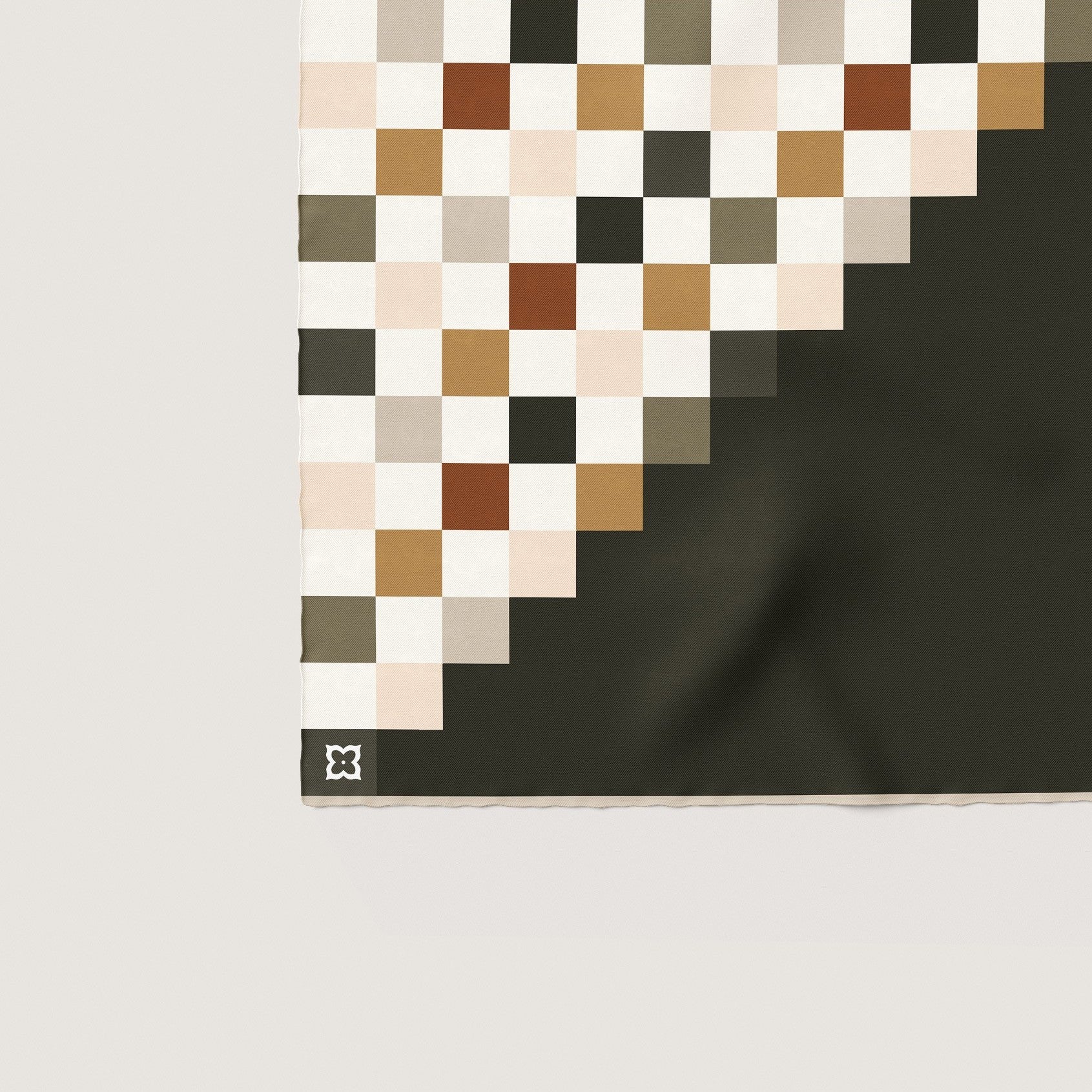 A softened checkerboard of earthy neutrals, Atelier Forrest feels collected and intentional. Accented with a monochromatic logo and completed with a delicate cream edge to contrast the rich green.