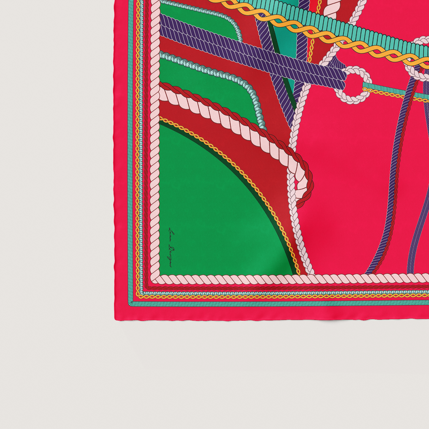 An ode to the refined sport, Cavaliere Rouge reimagines equestrian heritage through fluid ropework and modern color play blending various shades of pink and red.
