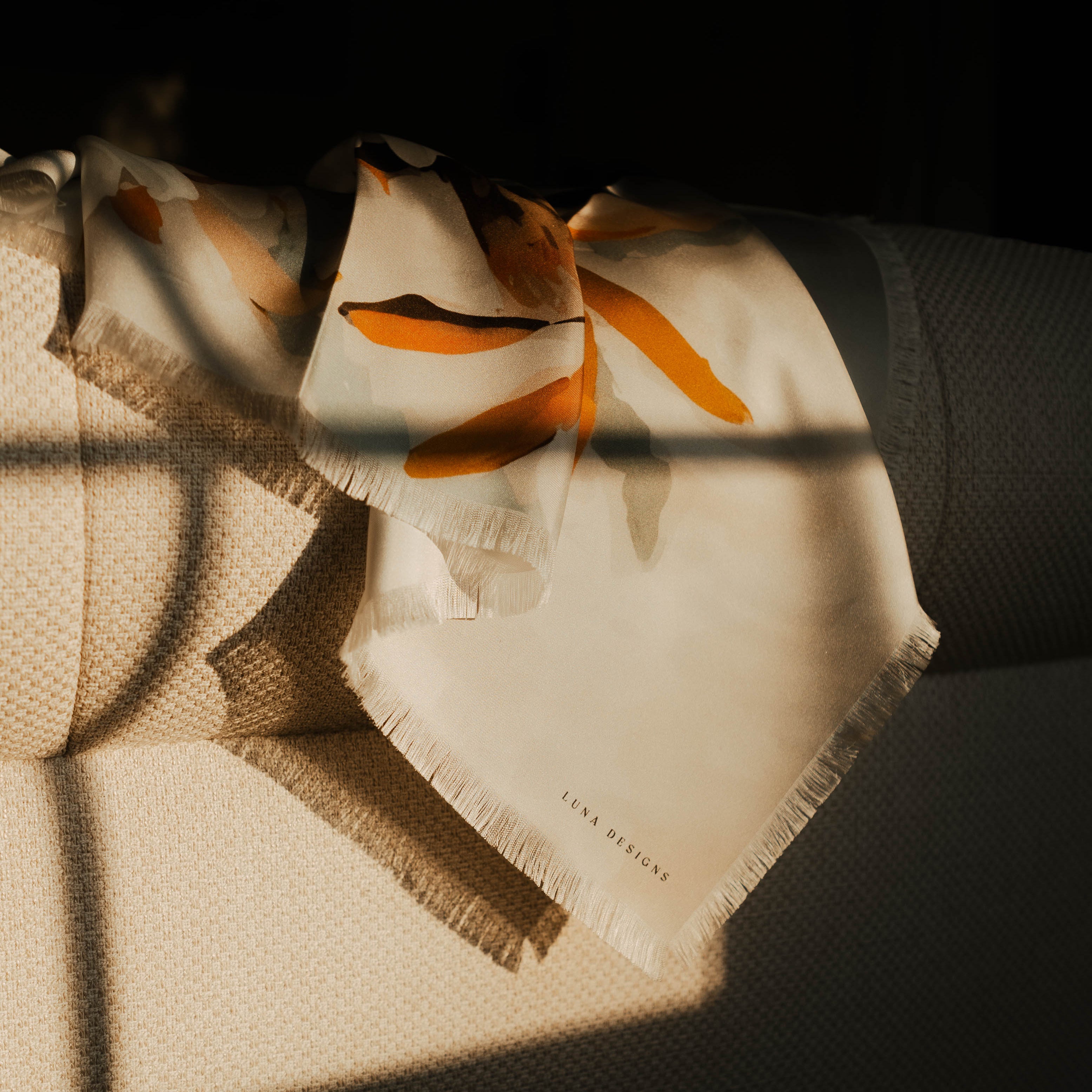 Luna scarves are crafted from the finest silk, offering a smooth and luxurious drape even after seasons of wear.